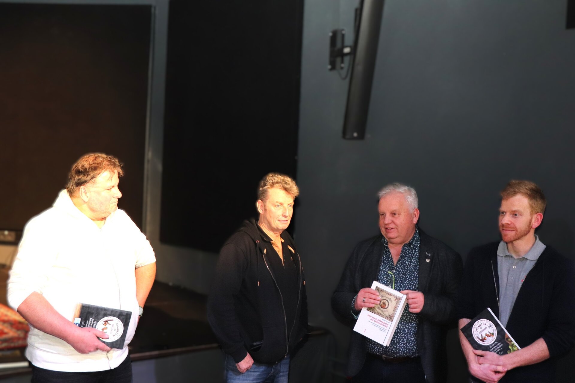 Landesgruppenvorsitzender Bernd Heitmann (2.v.r.) überreichte Gastgeschenke an Volker Bergmann (l.), Jörg Hans (2.v.l) und Konstantin Ziller (r.)