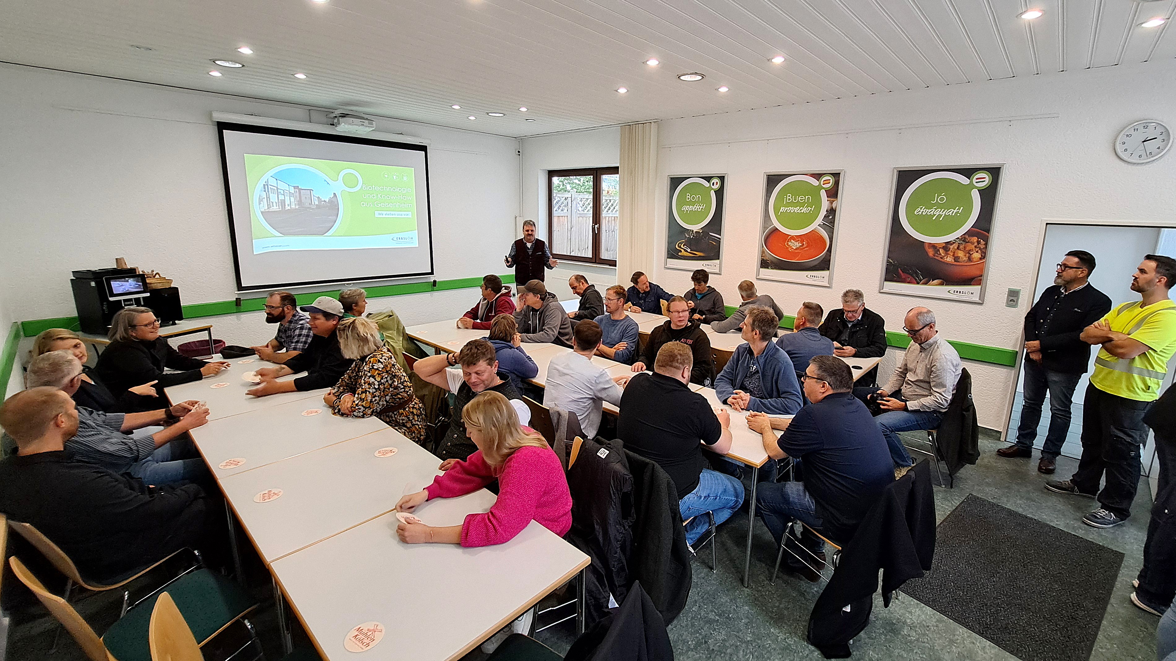 Im Rahmen der Firmenpräsentation und des Rundgangs durch die Produktion wurde den Teilnehmern ein umfassender Einblick in die Vielfalt der Erbslöh-Produkte für die Bier-, Wein- und Saftbranche gewährt.