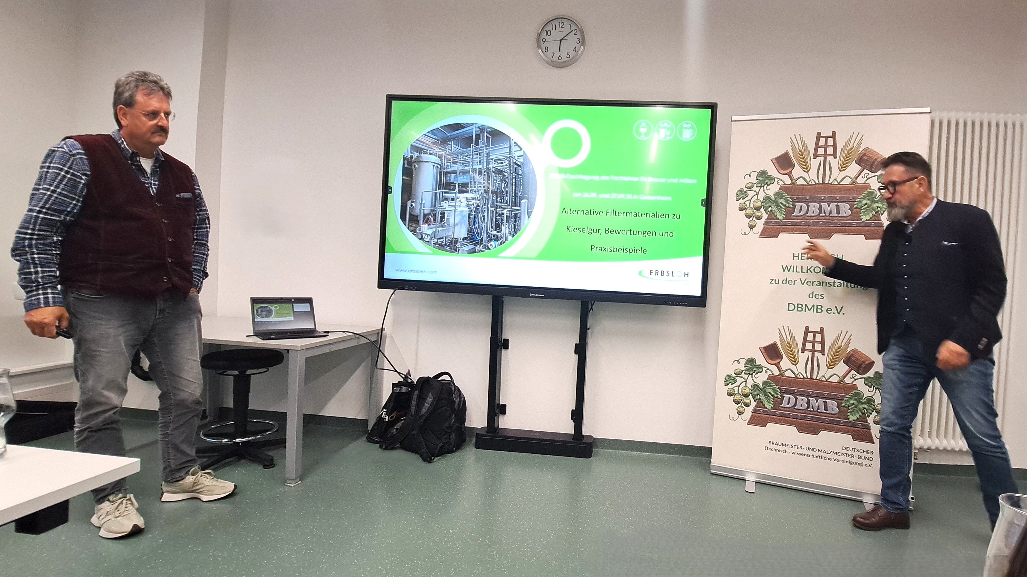 Die Fachvorträge der Firma Erbslöh von Volker Müller über Alternative Filtermaterialien zu Kieselgur, Bewertungen und Praxisbeispiele und von Alexandra Steffens und Ralf Otto über Kieselgurfiltration, Aufbau und Problemlösung gaben den Lehrkräften hervorragende Einblicke und Lösungsansätze für aktuelle und zukünftige Problemstellungen bei bestehenden Anschwemmfiltern.