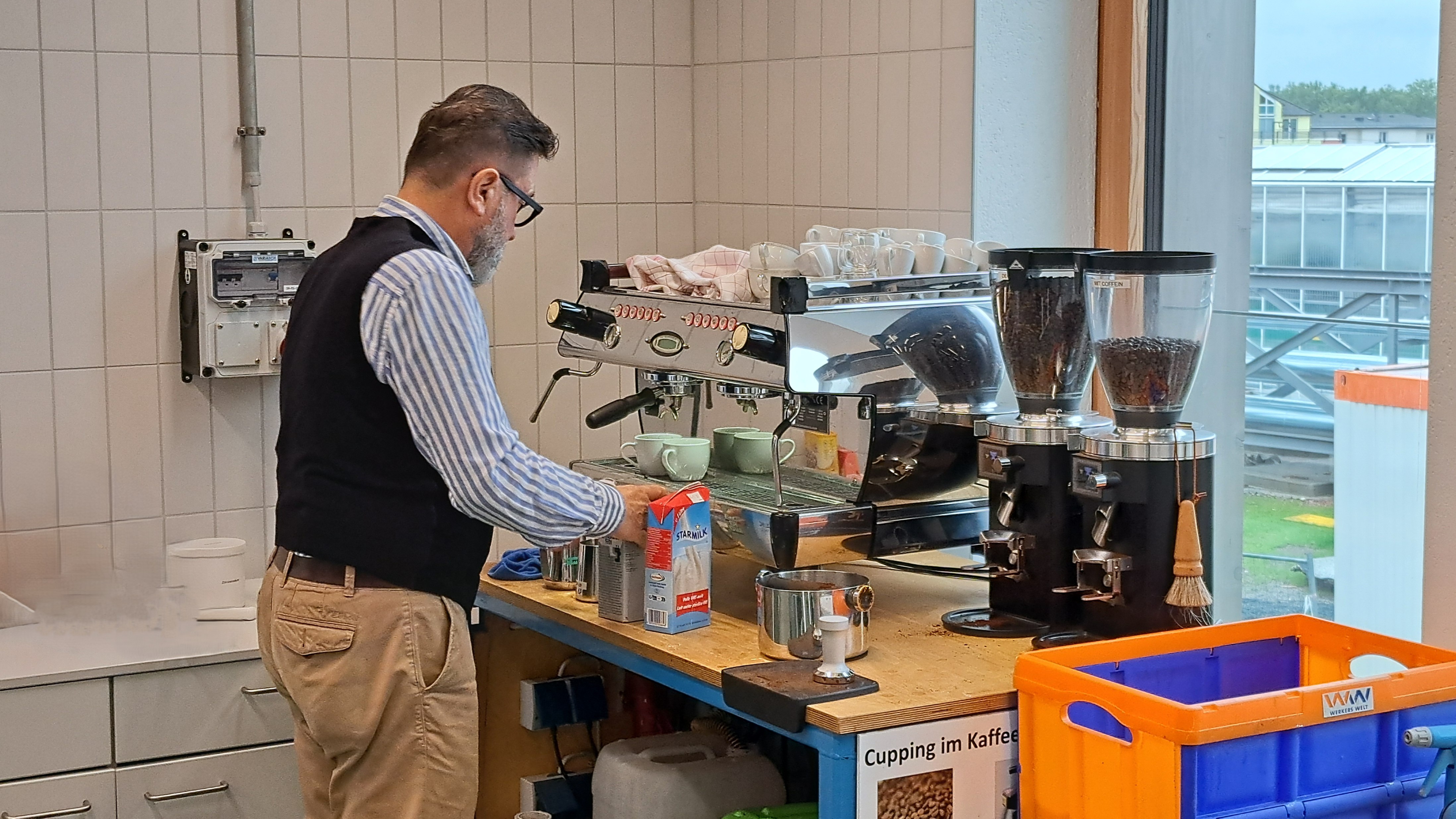 Es gab besten Kaffee aus der Siebträgermaschine von Prof. Dr Lindemann persönlich kredenzt. Ein Hochgenuss.